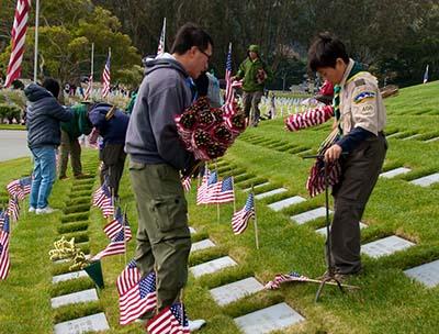 Locally, the Golden Gate National Cemetery was first opened in 1941 and is one of 131 National cemeteries in 39 states. It is the final resting place of 15 Medal of Honor recipients, Congressman Leo Ryan, and Admiral Chester W. Nimitz, commander of the US Pacific Fleet during World War II. Each year, Scouts, Scouters, veterans and other community groups from all over the Bay Area gather in tribute to these gallant men and women who have made the ultimate sacrifice in defense of our country.