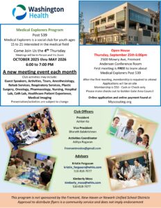 If so, consider having them join the MEDICAL EXPLORERS PROGRAM – POST 539. Check out the attached flyer; for more information, reach out to Nadia Dhillon at